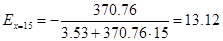 Найдем прогноз на основании модели. Выберем произвольную точку из области прогноза [9.2; 28.7], х=15