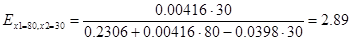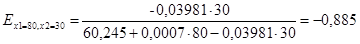 х1=80, х2=30. Рассчитываем прогнозные значения по модели для всех точек выборки и для точки прогноза: ![]()