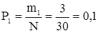 | Опытная вероятность Pi | 0,1 | 0,17 | 0,2 | 0,23 | 0,2 | 0,1 |