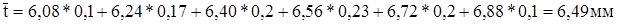 Средний размер толщины шлиц первичного вала коробки передач, определенный по уравнению 1.3 с использованием статистического ряда будет равен: