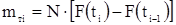 Статистический ряд представляет из себя таблицу из четырех строк (таблица 1.2). В первой строке указываются границы интервалов, во второй – количество случаев попадания случайной величины в каждом интервале (частота) mi , в третьей – опытная вероятность pi случайной величины, в четвертой – накопленная опытная вероятность![]()