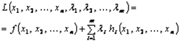 (число которых равняется числу ограничений), которые называются множителями Лагранжа, и составим функцию Лагранжа такого вида: