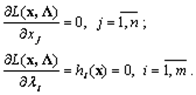 Метод множителей Лагранжа позволяет отыскивать максимум или минимум функции при ограничениях-равенствах. Основная идея метода состоит в переходе от задачи на условный экстремум к задаче отыскания безусловного экстремума некоторой построенной функции Лагранжа. Пусть задана задача НП при ограничениях-равенствах вида