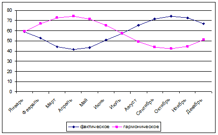 | Ноябрь | 5,235988 | 58,25+0,97*(0,5) +16,02 *(-0,87) = 44,79 |