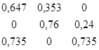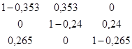 Р1(2) = Р1(1)Р11 + Р2(1)Р21 + Р3(1)Р31 = 0,912*0,647 + 1,113*0 + 0,975*0,265 = 0,848