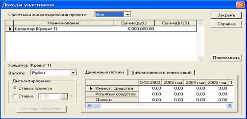 Ввод данных, характеризующих стратегию формирования капитала проекта, осуществляется только после проведения расчета для определения потребности в капитале, при этом все данные, характеризующие поступления и затраты в проекте, должны быть уже введены.