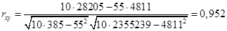 Следовательно, коэффициент корреляции существенно отличается от нуля и существует сильная линейная связь между х и у.