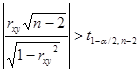 , то гипотеза о существенном отличии коэффициента корреляции от нуля принимается, в противном случае отвергается.