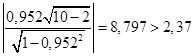 Здесь t1-б/2, n -2 – квантиль распределения Стьюдента, б - уровень значимости или уровень доверия, n – число наблюдений, (n-2) – число степеней свободы. Значение б задается. Примем б = 0,05, тогда t1-б/2, n -2 = t0,975,8 = 2,37. Получаем: