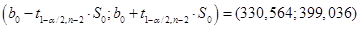Доверительный интервал для коэффициента b 0 уравнения регрессии: