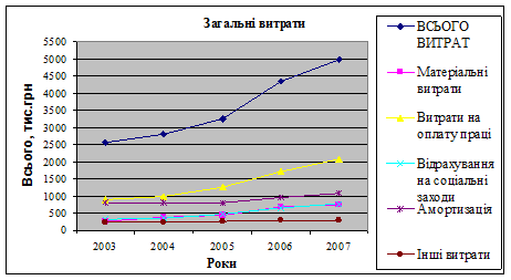 Рис.1Загальні витрати підприємства за рік (2003-2007 рр.)