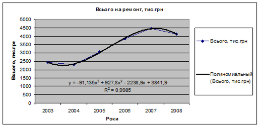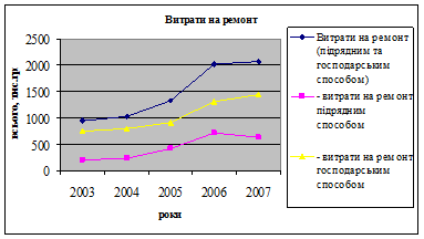 Рис.4 Графік витрат на ремонти (2003-2008 рр.)