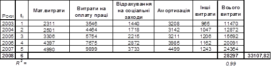 Прогнозне значення витрат було розраховано за формулою: