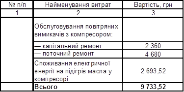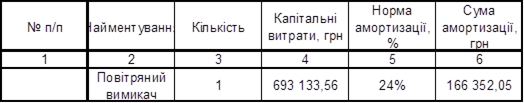 Таблиця 5 Капітальні витрати на монтаж повітряного вимикача