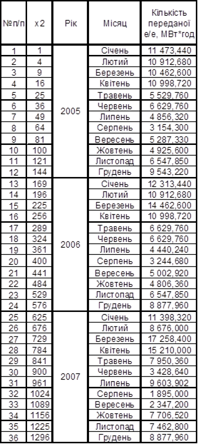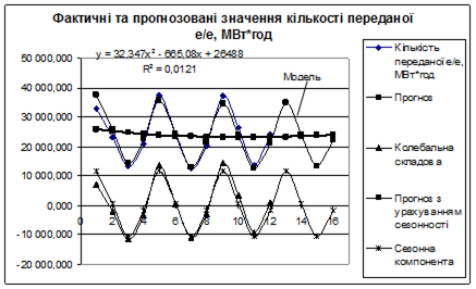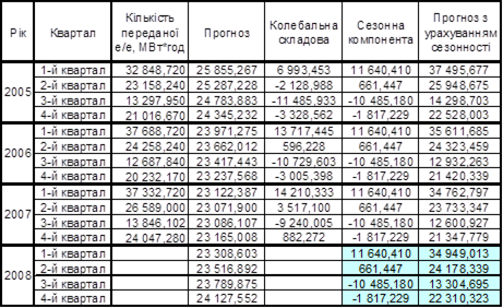 Була розроблена математична модель прогнозування кількості переданої е/е на 2008 рік з урахуванням сезонності.