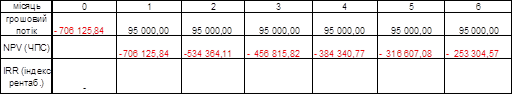 Так як умовою надання будь-яким банком грошей для здійснення інвестиційного проекту є те, що він має окупитися не більше як за рік, було встановлено термін окупності – 11 місяців