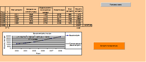 Дана система була розроблена для більш наглядного вивчення витрат підприємства за періодами (поквартально), прогнозованих витрат підприємства на 2008 рік, а також усіх розрахунків для визначення ефективності інвестиційного проекту
