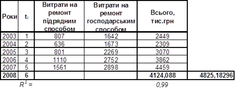 Таблиця 3 Значення витрат на ремонт, що прогнозуються (тис.грн)
