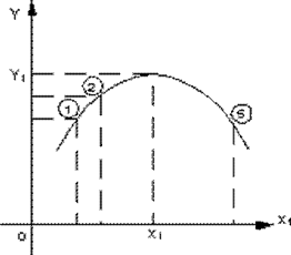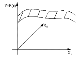 Если исследуется влияние на Y лишь одного фактора Х1 , то нахождение функции отклика – достаточно простая задача. Задавшись несколькими значениями этого фактора, в результате опытов получаем соответствующие значения Y и график Y =F(X) (рис. 2).