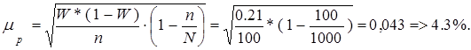 37. Определение ошибки выборки для доли собственно – случайном отборе