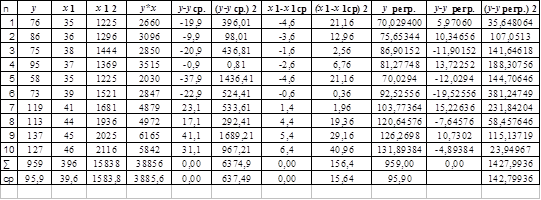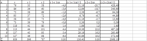 Построим расчетную таблицу для двухфакторной модели