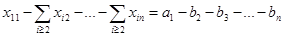 означает сумму всех свободных неизвестных. Аналогично, исключив из первого вертикального уравнения базисные неизвестные