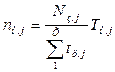 — суммарная занятость поточной линии изготовлением изделий (деталей) j-го наименования по всем партиям в плановом периоде, смен;