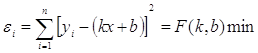 частіш за все користуються методом найменших квадратів. При цьому ставиться умова, щоб сума квадратів відхилень (відстаней) всіх досліджених точок від ординат, обчислених за рівнянням прямої εi,