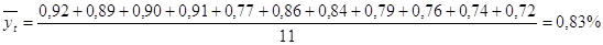 | Рентабельність фактична, уі | 0,92 | 0,89 | 0,9 | 0,91 | 0,77 | 0,86 | 0,84 | 0,79 | 0,76 | 0,74 | 0,72 |