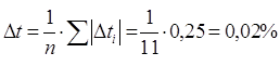 | Абсолютне відхилення, ∆t | -0,007 | -0,017 | 0,013 | 0,043 | -0,077 | 0,033 | 0,033 | 0,003 | -0,008 | -0,008 | -0,008 |
