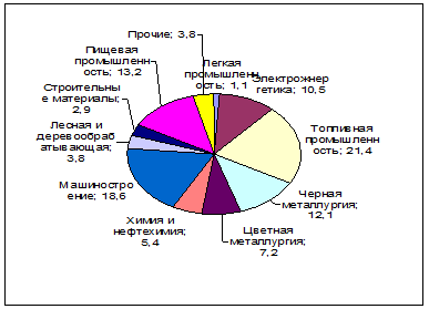 Рис. 1 Структура производства промышленной продукции в РФ по отраслям в 2007 г.[15]
