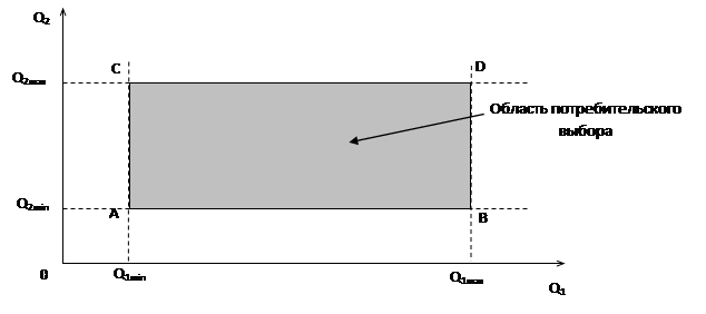 Q1 min , Q2 min – минимально необходимый набор благ.