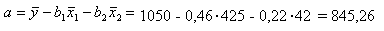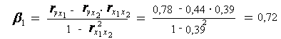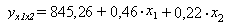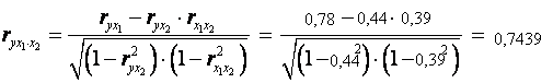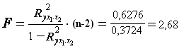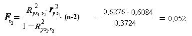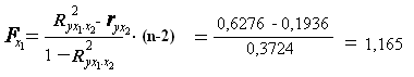 Частные F -критерий – F х1. и F х2 оценивают статистическую значимость присутствия факторов х 1 и х 2 в уравнении множественной регрессии, оценивают целесообразность включения в уравнение одного фактора после другого фактора, т.е. F х1 оценивает целесообразность включения в уравнение фактора х 1 после того, как в него был включен фактор х 2 . Соответственно F х2 указывает на целесообразность включения в модель фактора х 2 после фактора х 1.