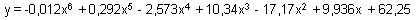 y = - 0,012*531441 + 0,292*59049 – 2,573*6561 +10,34*729 – 17,17*81 + 9,936*9 + 62,25 =