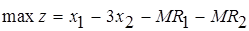 Для удобства решения свернём ограничения (1) и (2) в одно со знаком равенства, а также введем в ограничения и целевую функцию избыточные, остаточные и искусственные переменные.