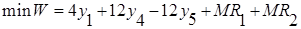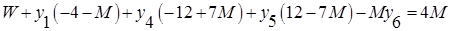 | W | 1 | -4-M | 7M-12 | 12-7M | 0 | -M | 0 | 0 | 4M |