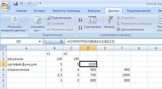 - Внести в определенную ячейку формулу для расчета целевой функции;