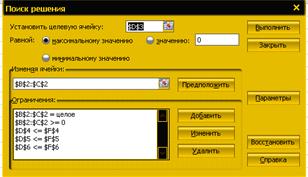 6. ПРОВЕРКА ОПТИМАЛЬНОГО РЕШЕНИЯ В СРЕДЕ MSEXCEL С ИСПОЛЬЗОВАНИЕМ ПРОГРАМНОЙ НАДСТРОЙКИ «ПОИСК РЕШЕНИЯ» (ПАКЕТ «SOLVER»)