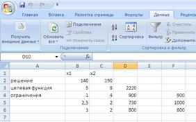Проверка результатов решения задачи в среде MS Excel показала аналогичное решение данной задачи оптимизации.