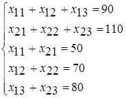 (i=1,…,m;i=1,2,…,n)- объемы перевозок от каждого i-го поставщика каждому j-му потребителю. Эти переменные могут быть записаны в матрице перевозок