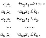 Найти такие неотрицательные значения х1 , х2 , ..., хn , которые удовлетворяют системе ограничений (1.2) и доставляют линейной функции (1.1) минимальное значение.