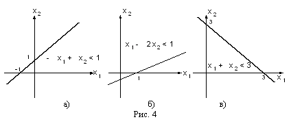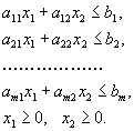 Обратим прежде всего внимание на ограничения x1 ≥0 и x2 ≥ 0. Они из всей плоскости вырезают лишь её первую четверть (см. рис. 1). Рассмотрим теперь, какие области соответствуют неравенствам вида a1 x1 + a2 x2 ≤ b. Сначала рассмотрим область, соответствующую равенству a1 x1 + a2 x2 = b. Как Вы, конечно, знаете, это прямая линия. Строить её проще всего по двум точкам.