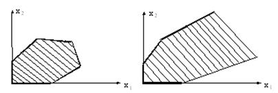 Множество V векторов (точек) линейного пространства Rn называется выпуклым, если оно содержит отрезок прямой, соединяющей две его любые точки, или, другими словами, из того, что a€V и b€V , следует, что х = (1- λ) х а+ λ х b€ V , где 0 ≤ λ≤ 1.