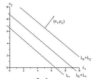 Наиболее наглядна эта интерпретация для случая n = 2, т.е. для случая двух переменных x1 и x2 . Пусть нам задана задача линейного программирования в стандартной форме