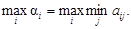 Подход игрока 1. Он должен получить максимальный гарантированный результат при наихудших условиях. Значит, при выборе отвечающей этим условиям своей чистой стратегии он должен выбрать гарантированный результат в наихудших условиях, т.е. наименьшее значение своего выигрыша aij , которое обозначим