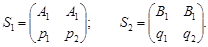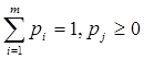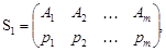 Для игрока 1 смешанная стратегия, заключающаяся в применении чистых стратегий А1 , А2 , ..., Ат с соответствующими вероятностями р1 , р2, ..., рт .