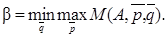 Чистая верхняя цена игры показывает, какой максимальный выигрыш может гарантировать игрок 1, применяя свои чистые стратегии, - выигрыш, не меньший чем а. Игрок 2 за счет указанного выше выбора своих чистых стратегий не допустит, чтобы игрок 1 мог получить выигрыш, больший чем β. Таким образом, минимаксная стратегия отображается столбцом платежной матрицы, в котором находится элемент β (см. табл. 1). Она является оптимальной чистой гарантирующей стратегией игрока 2, если он ничего не знает о действиях игрока 1.