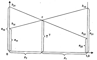 - значения выигрышей игрока 1 - могут означать математическое ожидание выигрыша (среднее значение), если выигрыш является случайной величиной. Величины ai