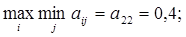 Чтобы этот гарантированный эффект в наихудших условиях был максимальным, нужно из всех a.i , выбрать наибольшее значение. Обозначим его a и назовем чистой нижней ценой игры (максимин):
