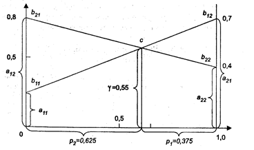 а11 = 0,3; а12 = 0,8; а21 = 0,7; а22 = 0,4.